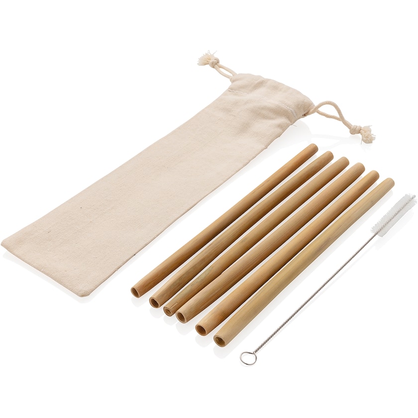 Umweltfreundliches Set aus 6 Bambus-Trinkhalmen. Der Trinkhalm ist geschirrspülergeeignet und kann immer wieder verwendet werden. Kann mit warmen und kalten Getränken genutzt werden. Der Trinkhalm ist biologisch abbaubar. Da Bambus ein natürlich wachsendes Material ist, kann der Durchmesser zwischen 0,6 und 1 cm betragen. Mit Beutel und Reinigungsbürste. Der Druck erfolgt auf dem Beutel.