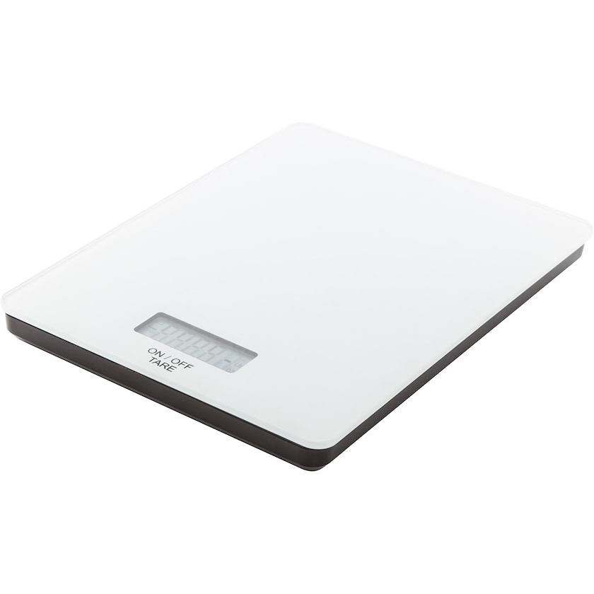 Digitale Küchenwaage im modernen Design. Die Oberseite besteht aus gehärtetem Glas. Kann bis zu 5 kg tragen und zeigt das Gewicht mit 1-Gramm-Genauigkeit an. Stromversorgung über 2 AAA-Batterien (nicht im Lieferumfang enthalten).