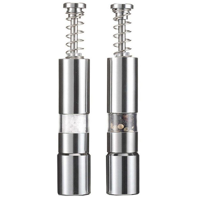 Schön designtes Set aus Salz- und Pfeffermühle. Aus Metall gefertigt.