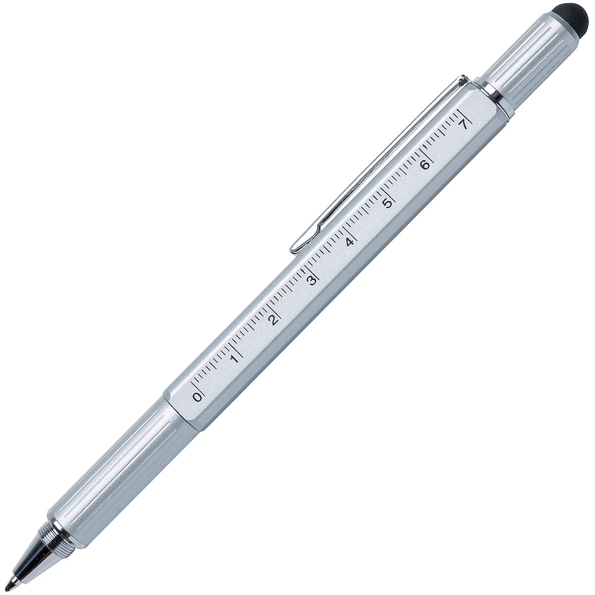 Metallstift mit Lineal, Wasserwaage, Schraubendreher und Touchfunktion. Der Stift ist aus hochwertigem Messing und hat einen Aluminiumclip. Wird in einer elegante Geschenkverpackung geliefert.
