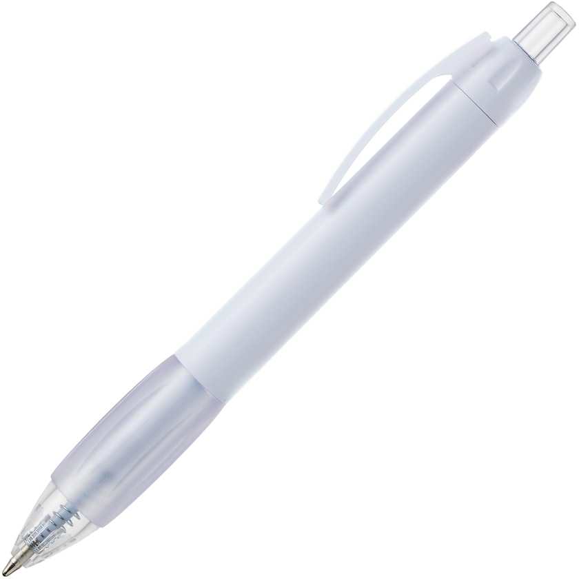 Matter Stift mit Clip und ungewöhnlich großer Druckfläche. Der Stift hat eine große, bequeme Grifffläche in einem klaren Material. Ein charakteristischer Kugelschreiber mit großer Druckfläche!
