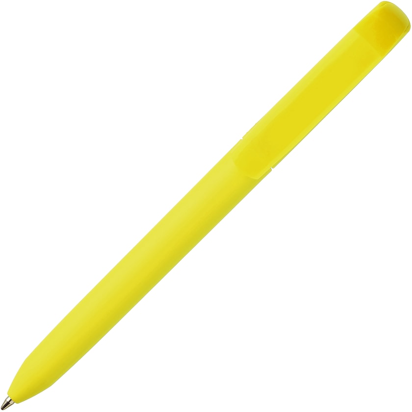 Kugelschreiber mit Logo in fluoreszierenden Farben. Der Stift hat einen angenehm gummierten Stiftkörper. Der Druck wird auf dem Clip platziert.