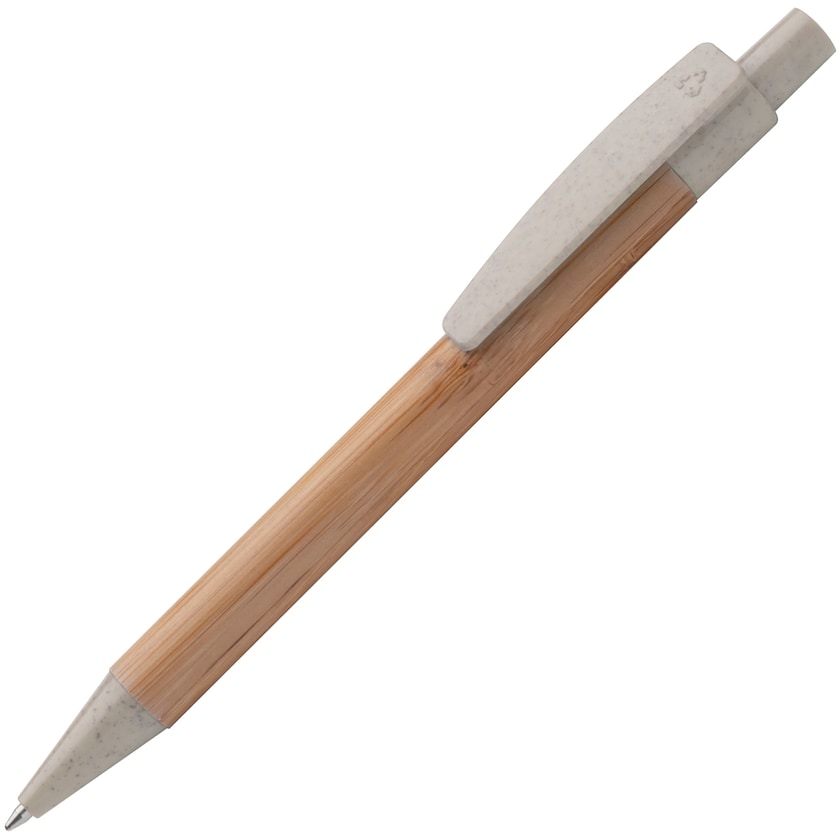 Umweltfreundlicher Kugelschreiber hergestellt aus Bambus und Weizenhalm. Das Logo kann aufgedruckt oder aufgelasert werden.