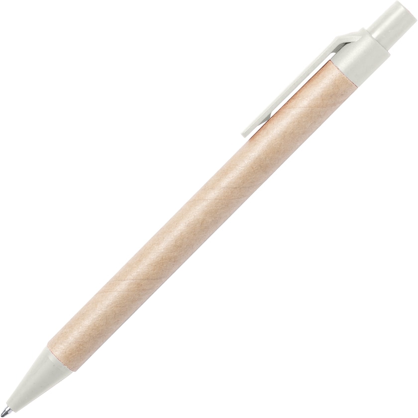Umweltfreundlicher Stift aus recyceltem Papier und Weizenstroh-Kunststoff. Der Stift verfügt über eine blaue Tintenpatrone.