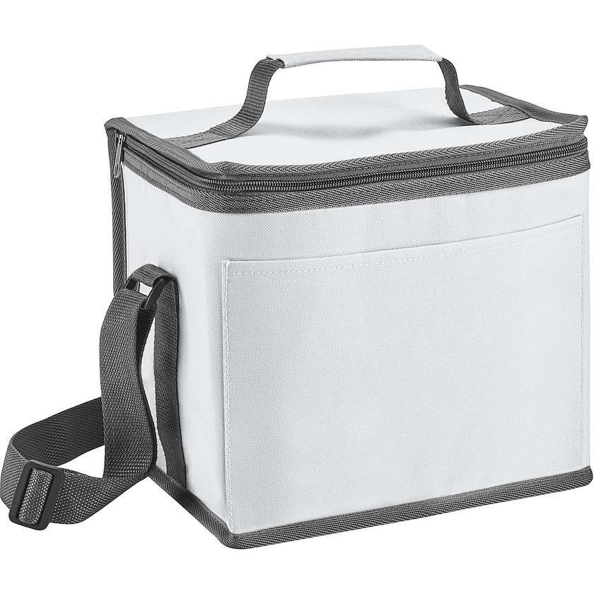 Klassische Kühltasche mit Tragegriff am Deckel. Vorne befindet sich ein Fach für kleine Dinge. Der Schulterriemen ist einstellbar.