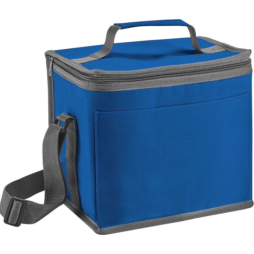 Klassische Kühltasche mit Tragegriff am Deckel. Vorne befindet sich ein Fach für kleine Dinge. Der Schulterriemen ist einstellbar.