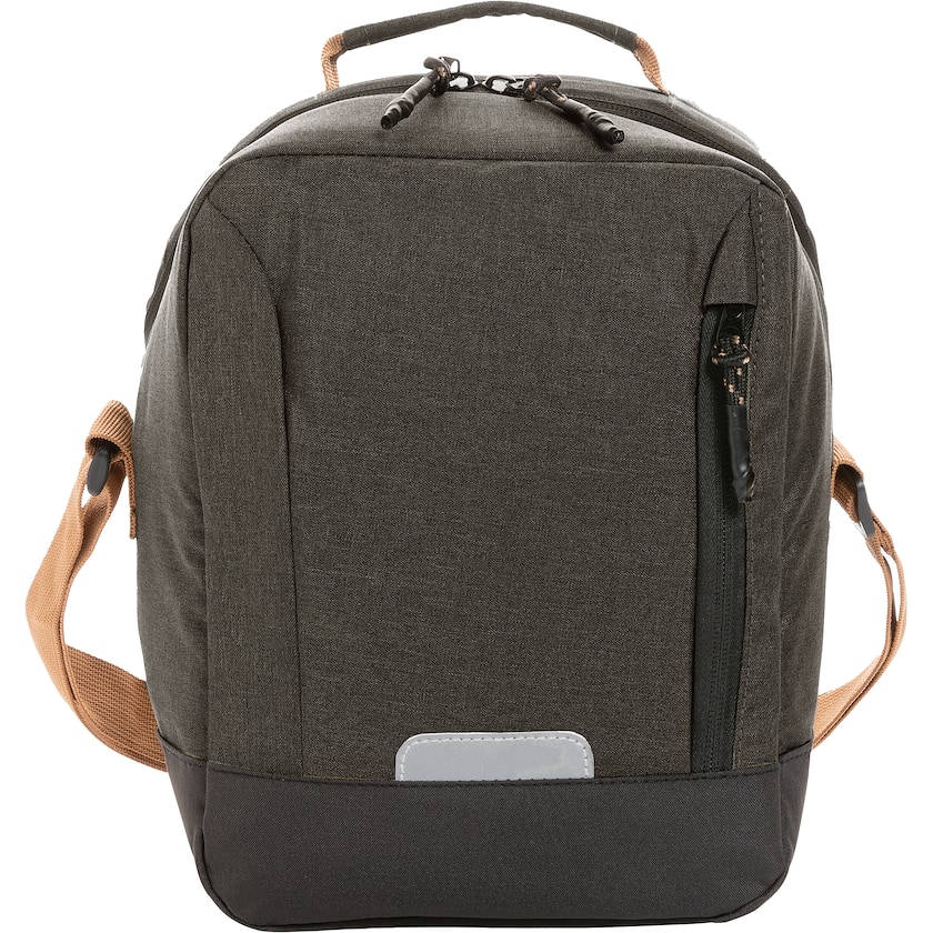 Umweltfreundliche Kühltasche aus recyceltem Material. Die Kühltasche hat die perfekte Größe für ein Mittagessen für zwei Personen. Der Schultergurt ist verstellbar. An der Vorderseite befindet sich eine kleine Reißverschlusstasche.