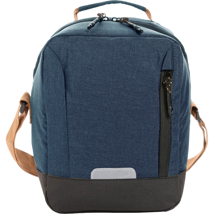 Umweltfreundliche Kühltasche aus recyceltem Material. Die Kühltasche hat die perfekte Größe für ein Mittagessen für zwei Personen. Der Schultergurt ist verstellbar. An der Vorderseite befindet sich eine kleine Reißverschlusstasche.