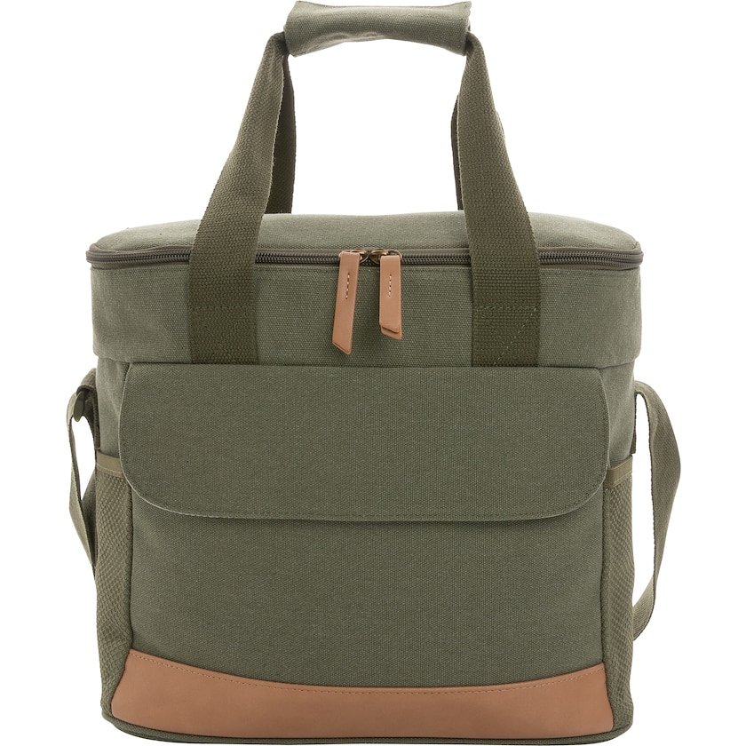 Hochwertige Kühltasche aus recyceltem Material. In die Kühltasche passen alle wichtigen Dinge für Ihr Picknick. An den Seiten befinden sich Netztaschen und vorne eine Tasche für kleinere Gegenstände. Der Stoff besteht zu 40 % aus recyceltem Polyester und zu 60 % aus recycelter Baumwolle. Das Futter besteht aus PEVA.