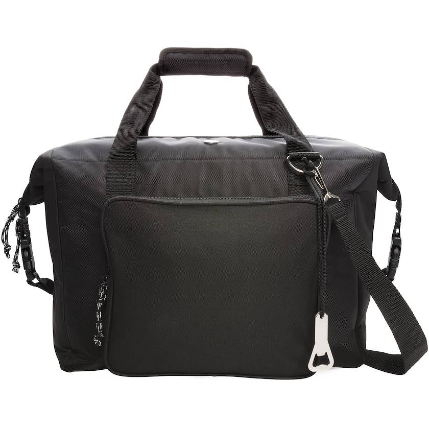 Geräumige Kühltasche von Swiss Peak mit Logo. Die Tasche hat ein großes Hauptfach, das 40 Liter Platz bietet, was zehn 1,5 Literflaschen entspricht. Vorne gibt es ein kleineres Aufbewahrungsfach. Der Schulterriemen ist verstellbar.