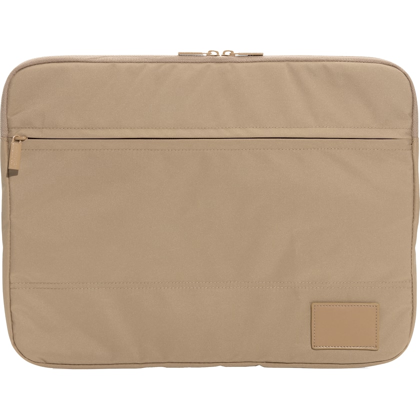Umweltfreundliche Laptophülle aus recyceltem Polyester. Die Laptophülle bietet Platz für einen 14" Laptop. An der Vorderseite befindet sich eine Tasche mit Reißverschluss.