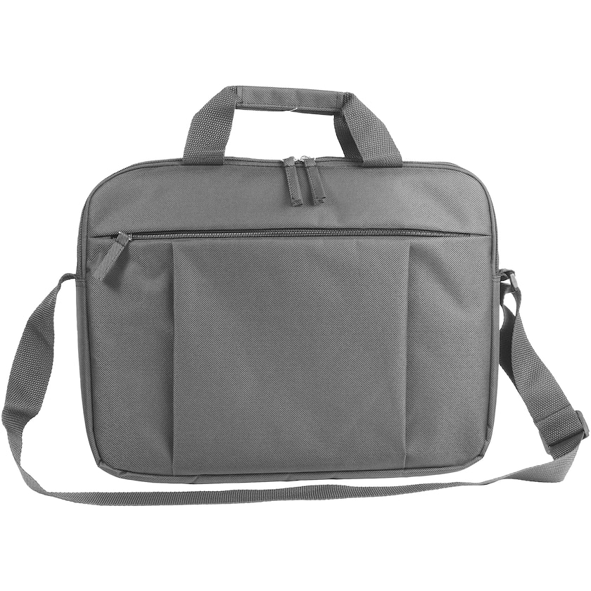 Erschwingliche Computertasche für einen 15-Zoll-Laptop. An der Vorderseite der Tasche befindet sich eine Reißverschlusstasche für kleinere Gegenstände. Es ist nur 1-farbiger Druck möglich.