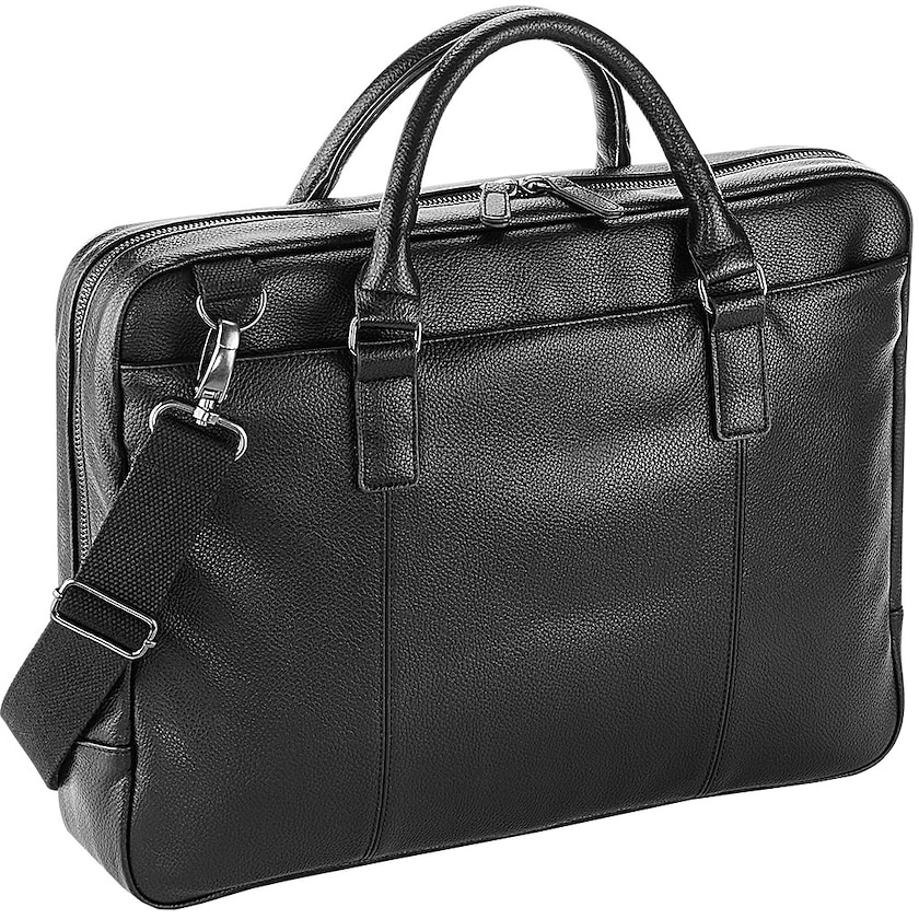 Elegante Laptoptasche aus Kunstleder. Innen befindet sich ein gepolsteres Fach mit Platz für die meisten Laptops bis 15,6" und ein gepolstertes Fach für iPad. Innen gibt es mehrere praktische Fächer.