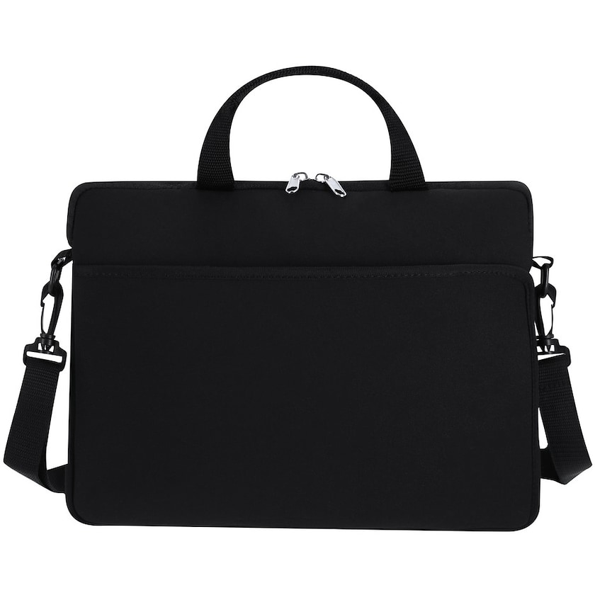 Softshell-Computertasche. Innen gibt es ein gepolstertes Fach für einen 14-Zoll-Laptop. Der Schultergurt ist abnehmbar. Auf der Rückseite befindet sich eine praktische Trolleyhalterung. Das Material schützt den Inhalt zuverlässig vor Stößen.