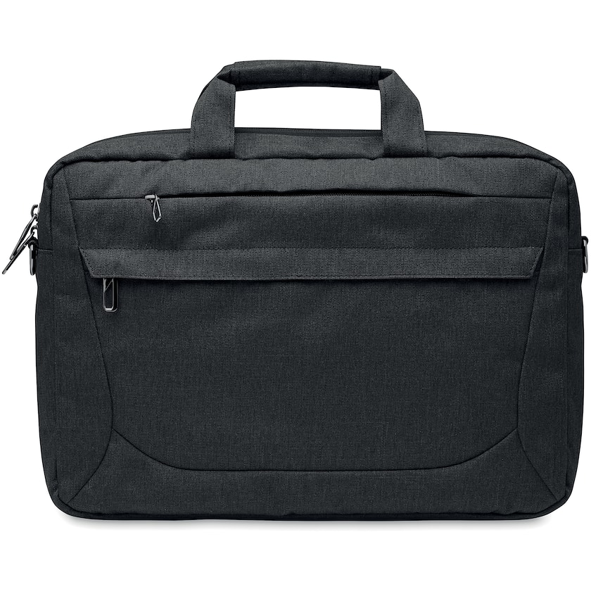 Hochwertige, umweltfreundliche Computertasche. Die Tasche besteht aus RPET, also recyceltem Polyester, und bietet Platz für einen 15-Zoll-Laptop. Auf der Rückseite befindet sich ein Riemen, mit dem die Tasche an einem Trolley befestigt werden kann.
