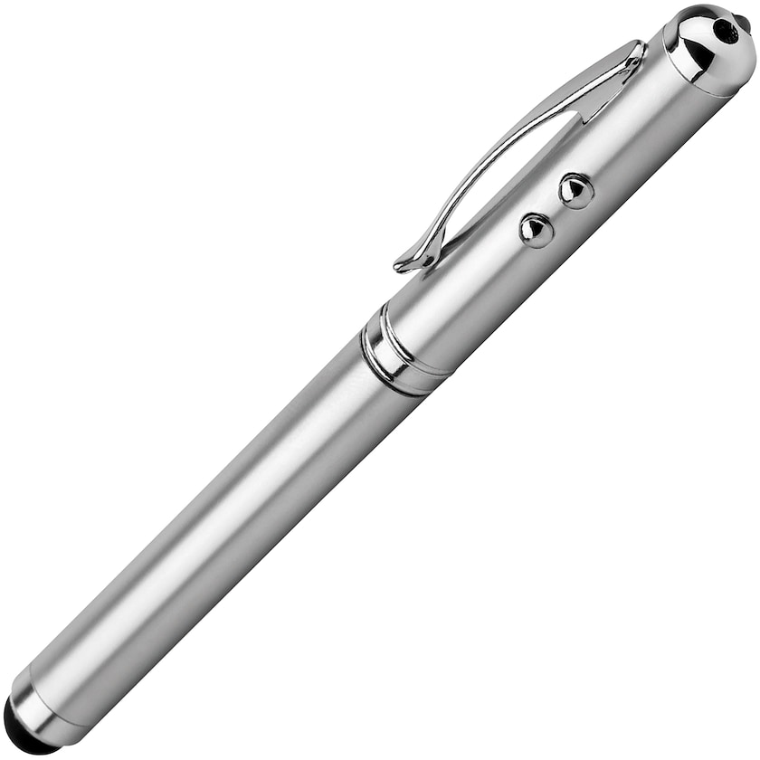 Laserpointer mit Kugelschreiber, LED-Lampe und Touchfunktion. Laserpointer Stanley hat blaue Tinte und ein weißes Licht. Batterien sind enthalten. Der Laserpointer wird in einer Geschenkbox aus Metall geliefert.