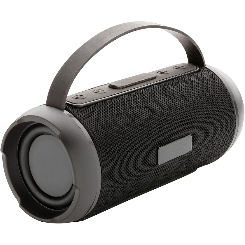 Wasserdichter Funklautsprecher mit vollem Klang. Perfekt für den Gebrauch im Freien. Dank dem Tragegriff kann er überall mit hingenommen werden. Der Akku erlaubt bis zu 6 Stunden Spielzeit. Der Druck erfolgt auf den Metallplatten.