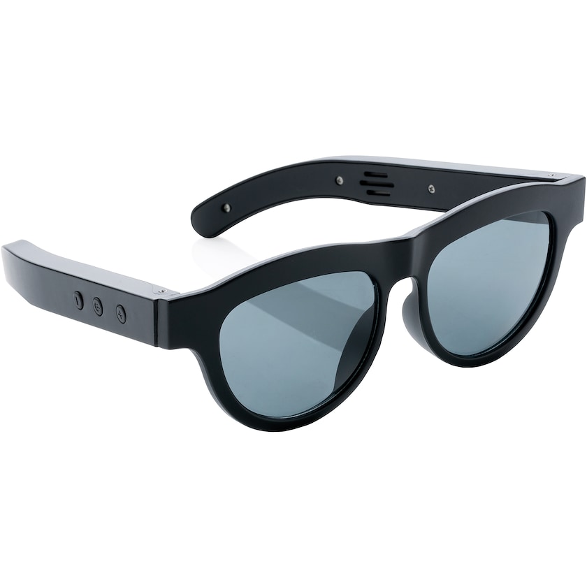 Trendige Sonnenbrille mit 2 eingebauten kabellosen Lautsprechern. Verbinden Sie ihr Handy mit der Sonnenbrille und genießen Sie ihre Lieblingsmusik. Die Gläser haben UV-Schutz 400. 10 m Reichweite vom Gerät. Der 110 mAh hat eine Spielzeit von bis zu 3 Stunden. Clark hat ein Mikrofon und eine Antwortfunktion für ankommende Anrufe. Geliefert wird in einem Kunststoffetui. Mikro-USB-Kabel im Lieferumfang. Der Druck erfolgt auf dem Etui.