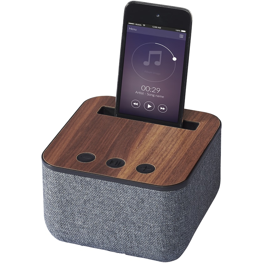 Exklusiver Bluetooth-Lautsprecher mit ausgezeichnetem Klang. Der Lautsprecher hat eine Konstruktion aus Holz und Stoff. Trotz seine diskreten Äußeren ist er ein leistungsstarker 5 W-Lautsprecher. Kingston hat ein eingebautes Mikrofon und eignet sich für Konferenztelefonate. Oben befindet sich ein Fach für ihr Handy. Mikro-USB-Kable und 3,5 mm Audio-Kabel im Lieferumfang. Spielt bis zu 3 Stunden bei maximaler Lautstärke. Wird in einer eleganten Geschenkverpackung geliefert.