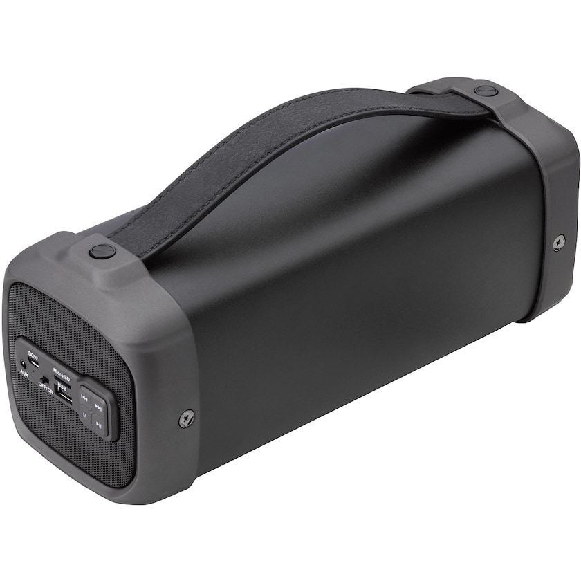 Leistungsstarker Lautsprecher mit tollem Sound. Perfekt bei der Outdoor-Party oder dem Firmenfest. Betrieb über Bluetooth oder 3,5-mm-Buchse. Kabel enthalten.