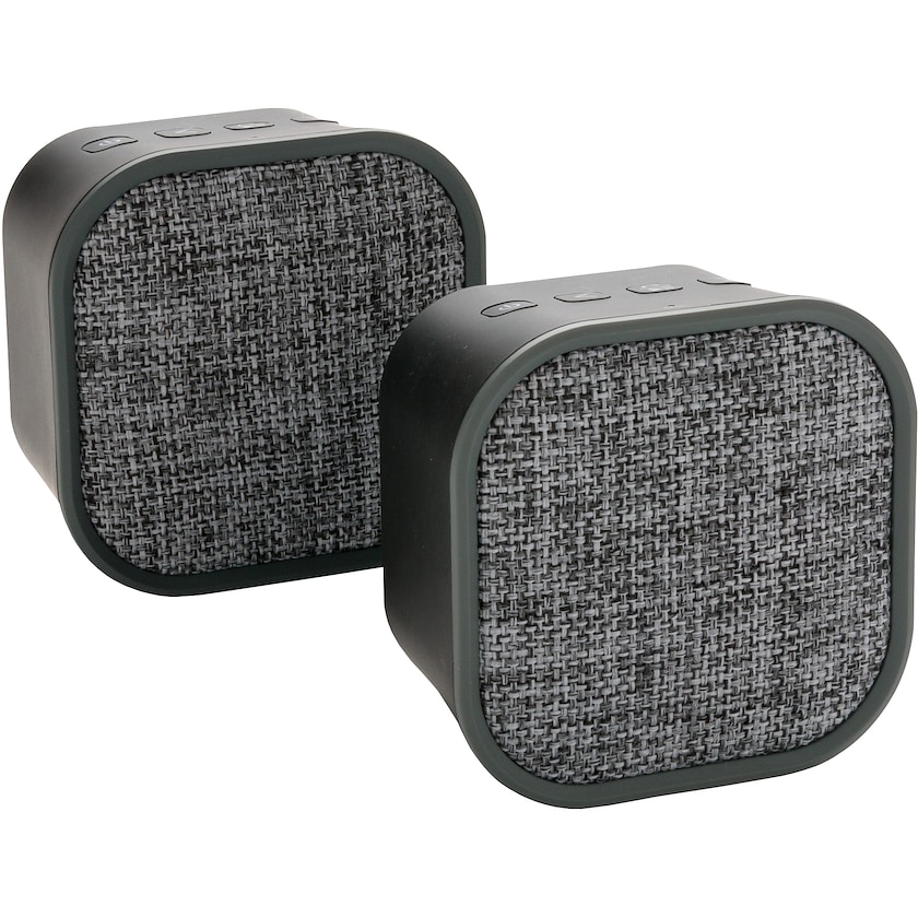Set mit zwei kabellosen Lautsprechern mit je 3W. Mit einen Akku, der pro Ladung bis zu 3 Stunden spielt. Auf der Rückseite befinden sich Magneten, um beide Lautsprecher zu verbinden. Perfekt für Feiern. Wird in einer eleganten Geschenkverpackung geliefert. Der Druckpreis gilt für einen Lautsprecher.