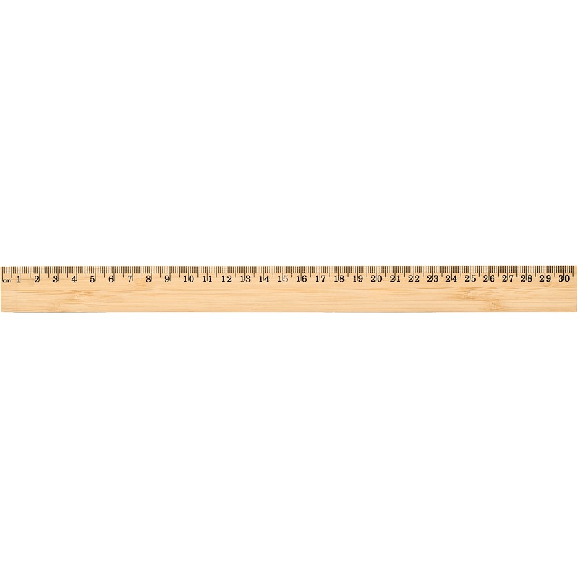30 cm langes Lineal aus Bambus. Eine Seite misst Zentimeter und die andere Zoll. Die Markierung erfolgt mittels Lasergravur.