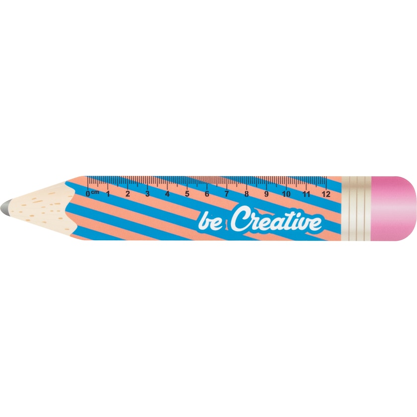 12 cm langes Lineal in Form eines Bleistiftes. Laden Sie die Druckvorlage herunter und gestalten Sie selbst das Lineal. Die gesamte Oberfläche kann nach Ihren Wünschen bedruckt werden. Das Lineal besteht aus biegbarem Plastik.