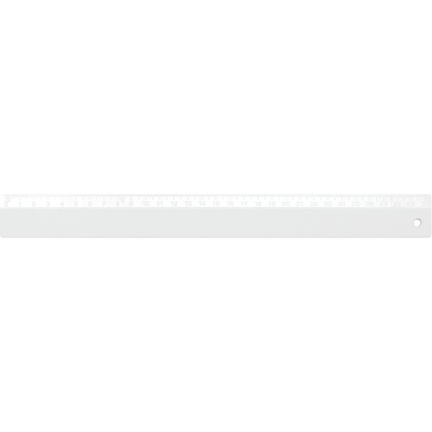 Weißes Lineal bedrucken mit einer Länge von 30 cm. Die Abmessungen sind in den Kunststoff eingegossen und können somit nicht abgenutzt werden.