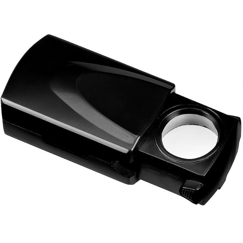 Kompakte Lupe mit LED-Lampe. Die Lupe hat einen Vergrößerungsfaktor von 30. Batterien sind im Lieferumfang enthalten.