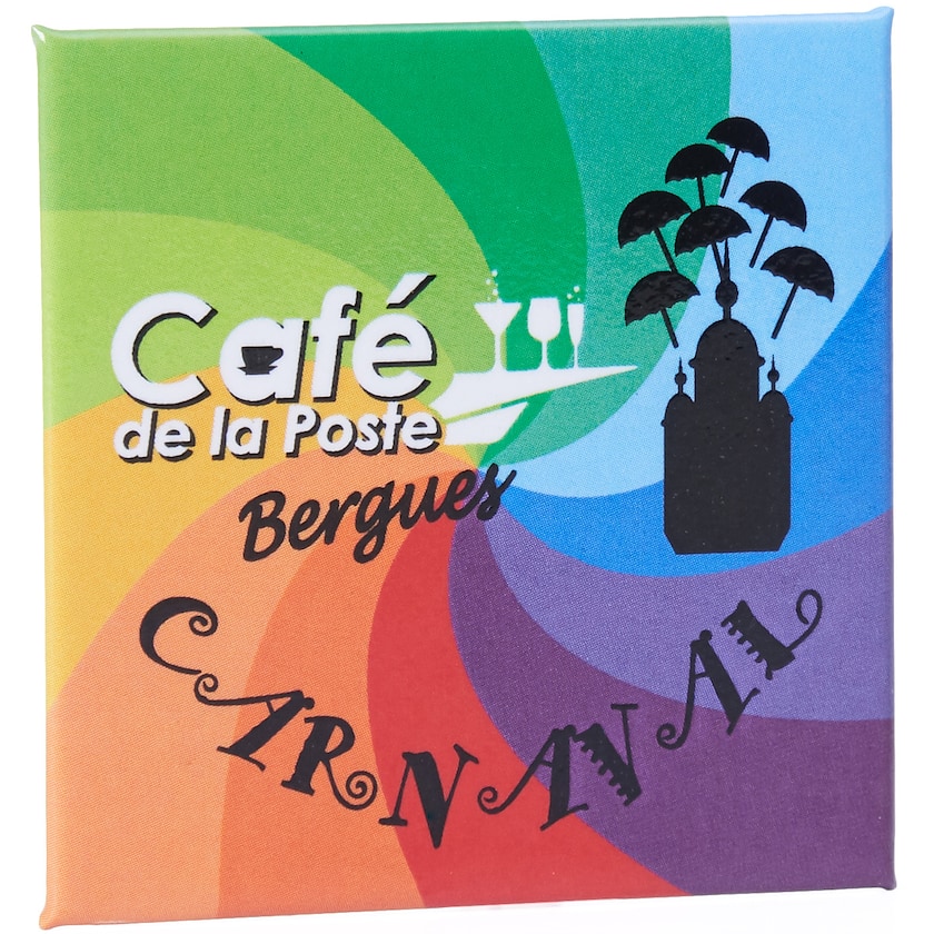 Quadratischer Magnet mit Logo auf der ganzen Oberfläche. Der Druck ist mit UV-Lack geschützt, was für einen schönen Glanz sorgt.