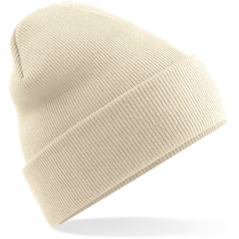 Gestrickte Mütze aus Polylana. Die Mütze hat ein zeitloses Design mit feinem Rippenstrick und Falten. Das Polylana-Material ist ein umweltfreundlicher Mix aus recyceltem und normalem Polyester.