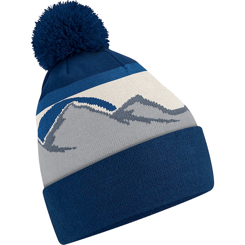 Hut mit einzigartigem Stoff, auf dem Berge abgebildet sind. Der Stoff ist aus einer umweltfreundlichen Mischung aus GRS-zertifizierter recycelter Baumwolle und recyceltem Polyester hergestellt.