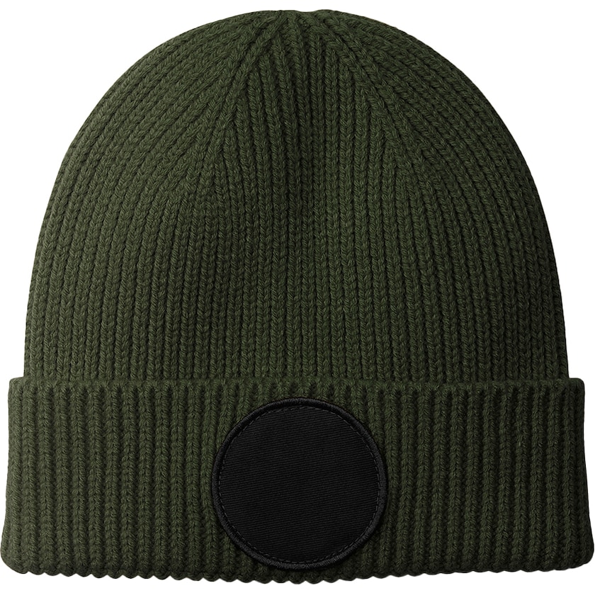 Rippenstrickmütze mit rundem schwarzen Etikett. Die Mütze besteht aus einem weichen Mix aus 52 % recyceltem Polyester, 47 % Acryl und 1 % Elastan. Der Polyester besteht zu 50 % aus recyceltem Material. Die Kennzeichnung kann wahlweise mittels Digitaldruck oder Stickerei erfolgen.