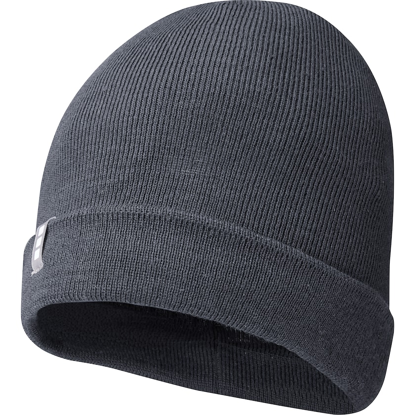 Umweltfreundliche Mütze von Elevate. An der Krempe befindet sich ein kleines Etikett, das darauf hinweist, dass die Mütze von Elevate stammt. Die Mütze besteht aus 60% Polylana und 40% Acryl. Polylana ist eine umweltschonendere Alternative als beispielsweise Acryl oder Wolle. Wasser-, Energie- und Kohlendioxidemissionen sind bei der Herstellung dieses Materials geringer.