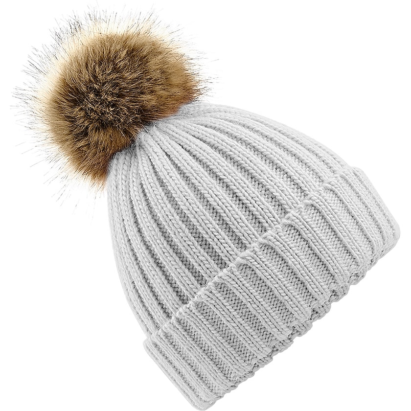 Zopfstrickmütze mit großem Bommel aus Fellimitat. Die Mütze ist in einem Unisex-Modell und besteht aus luxuriös-weichem Acryl. Der Bommel kann entfernt werden, wenn die Mütze gewaschen werden soll.