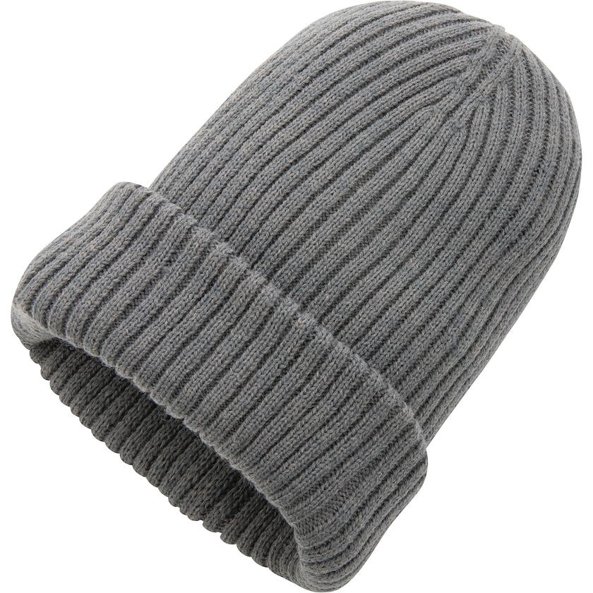 Umweltfreundliche Mütze mit breitem Rippstrick. Crocker hat ein zeitloses Design, das Sie im Winter warm hält. Die Mütze besteht aus Polylana®, einem Material, das Acryl ähnelt, aber weniger Energie und Wasser verbraucht, was eine geringere Auswirkung auf die Umwelt bedeutet.