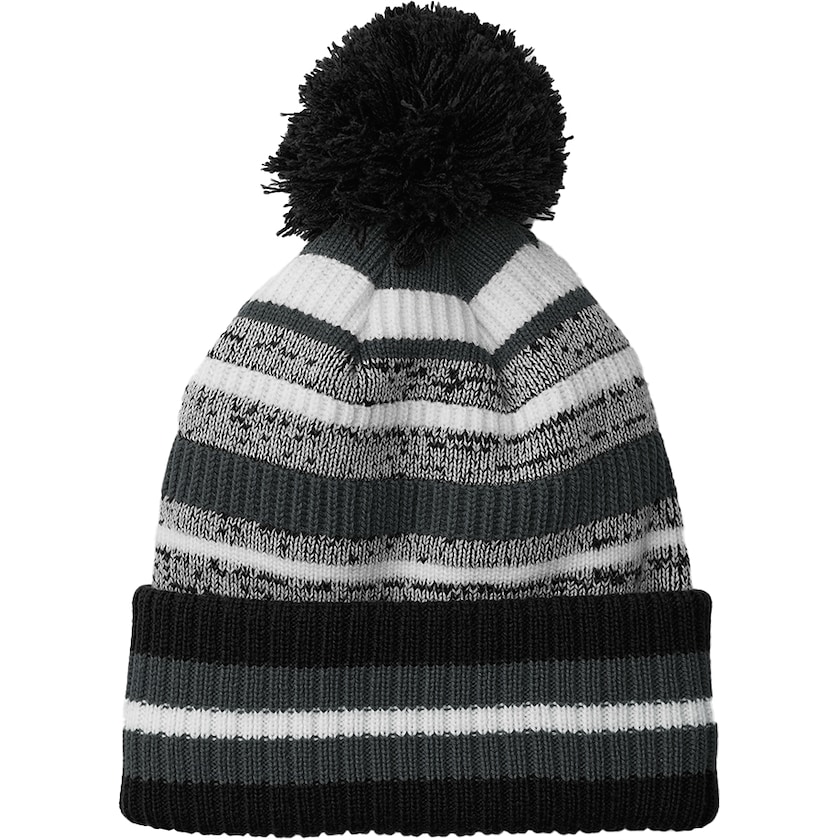 Umweltfreundliche Mütze mit gestreiftem Stoff und großer Quaste. Die Mütze besteht aus 100 % recyceltem Polyester, das nach Control Union CU811033 zertifiziert ist.