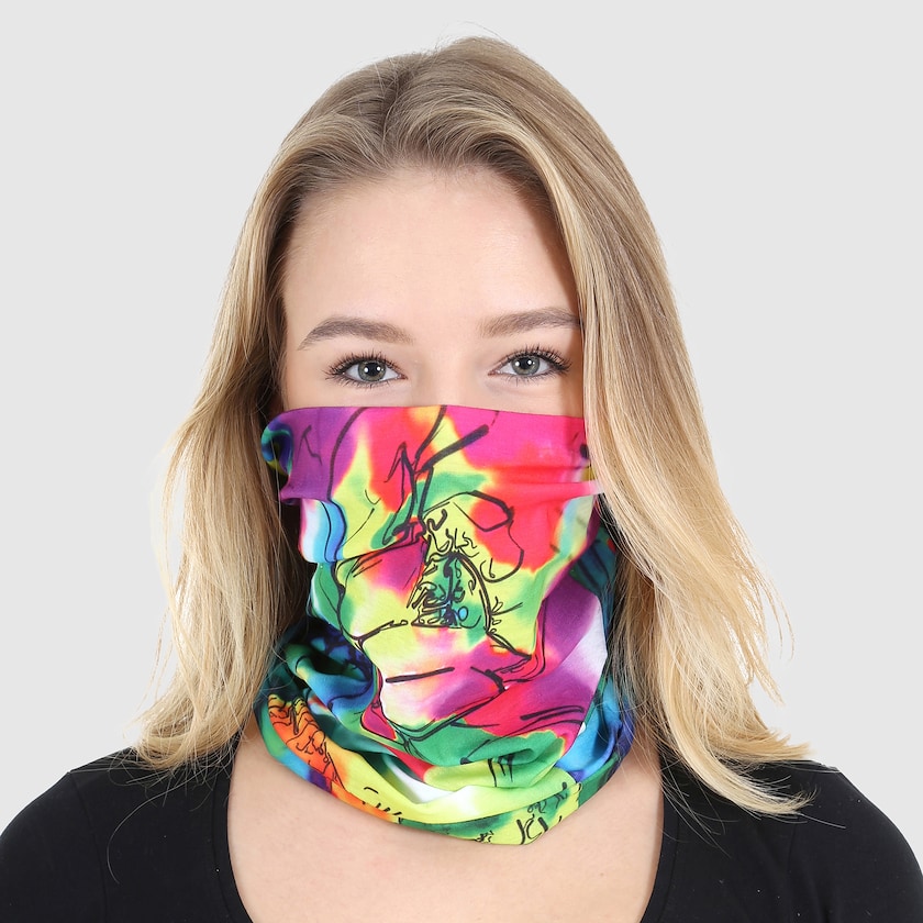 Multifunktioneller Schal mit 4-Farb-Fotodruck. Der Schal kann z.B. als Schal, Bandana, Handwärmer, Stirnband und Taschentuch verwendet werden. Bestellen Sie einen Multischal mit Logo bei Axon Profil!