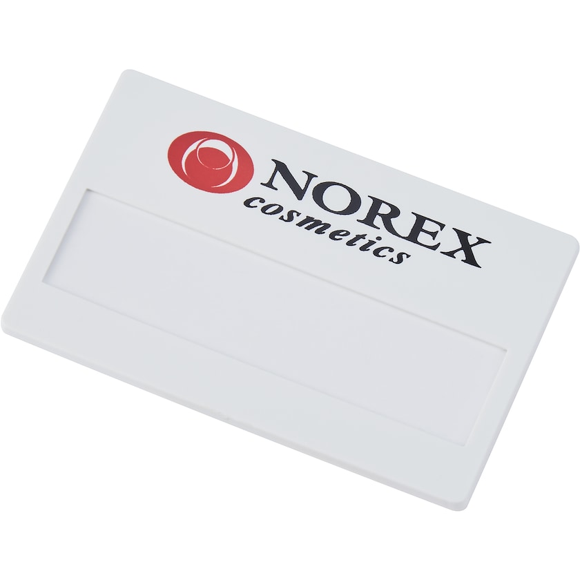 Klassisches Namensschild zu einem niedrigen Preis. In vielen Farben erhältlich. Eine gute Wahl für alle, die ein preiswertes Namensschild mit Logo suchen.