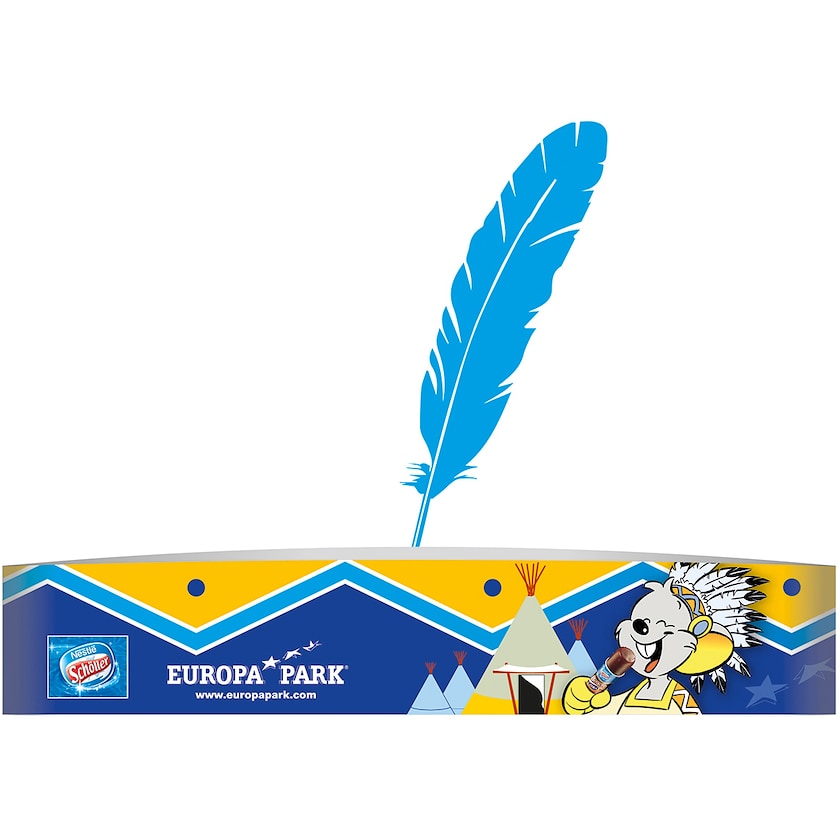 Indiansterstirnband aus recyceltem Papier. Das Papier besteht aus 95 % recyceltem Material. Die Innenseite ist weiß und die gesamte Außenfläche wird nach Ihren Wünschen bedruckt. Geliefert wird mit echten Federn in keuchtenden Farben.
