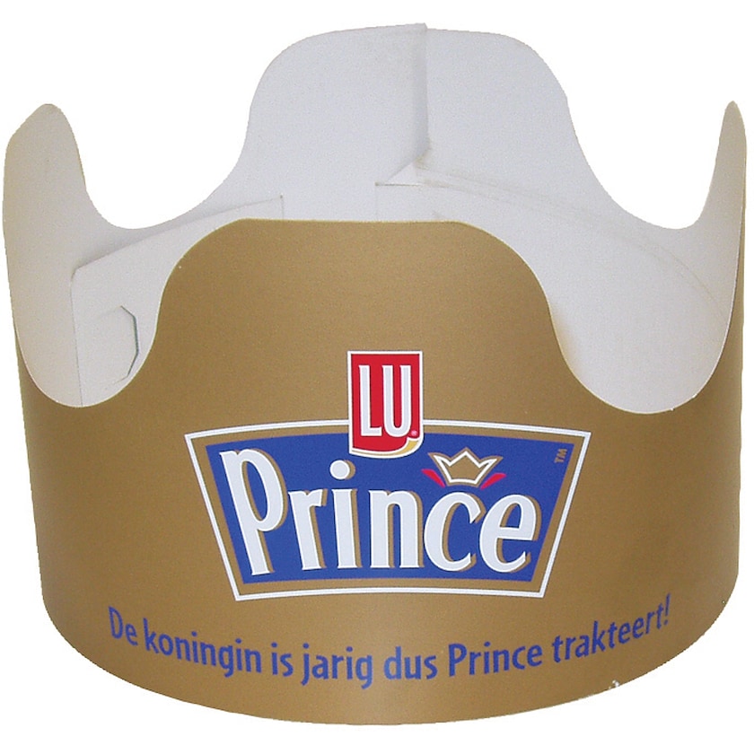 Königskrone mit Logo für den einmaligen Gebrauch. Wave ist aus 95% recyceltem Papier gefertigt. Die Königskrone wird ausgestanzt, aber flach geliefert. Der Druck erfolgt auf der Außenseite.