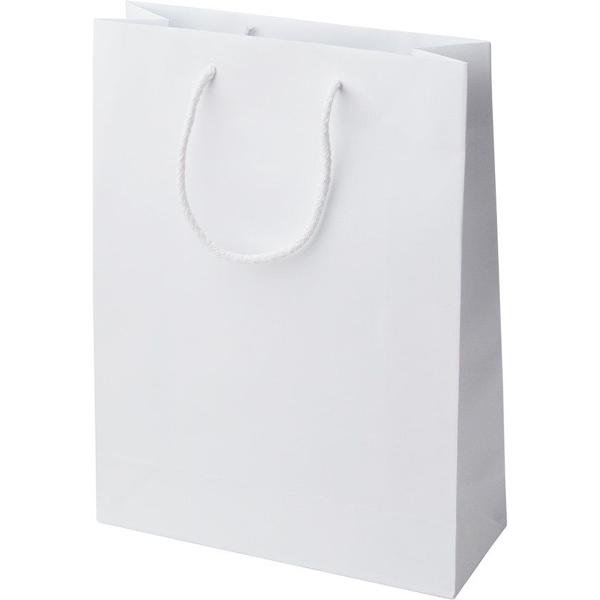 Luxuriöse Papiertüte mit Kordelgriff. In braun oder weiß erhältlich. Der Druckpreis gilt für eine Seite.