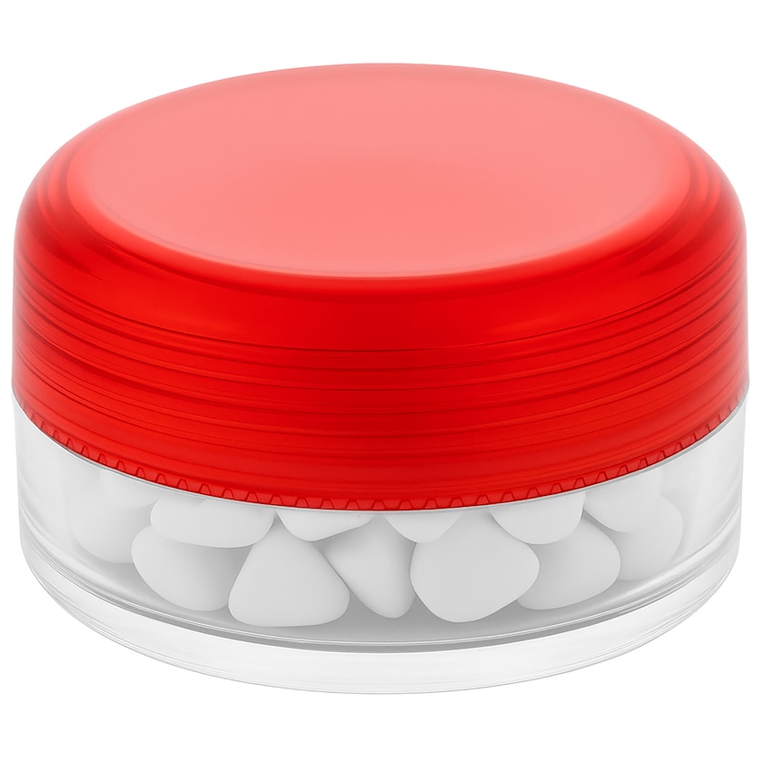 Kleine Dose mit 12 Gramm zuckerfreien Minztabletten. Der Aufdruck erfolgt auf dem Deckel. Schnelle Lieferzeit.