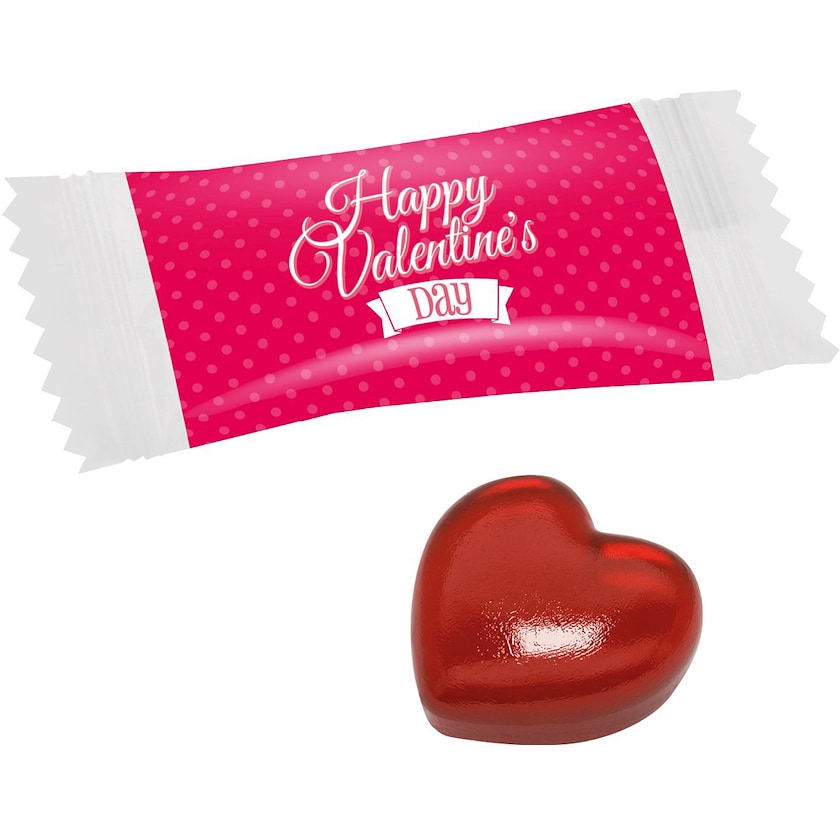 Herzförmige Bonbons im Flowpack. Die Verpackung wird nach Wunsch gestaltet. Mit diesem Artikel können Sie Ihre Gefühle zeigen!