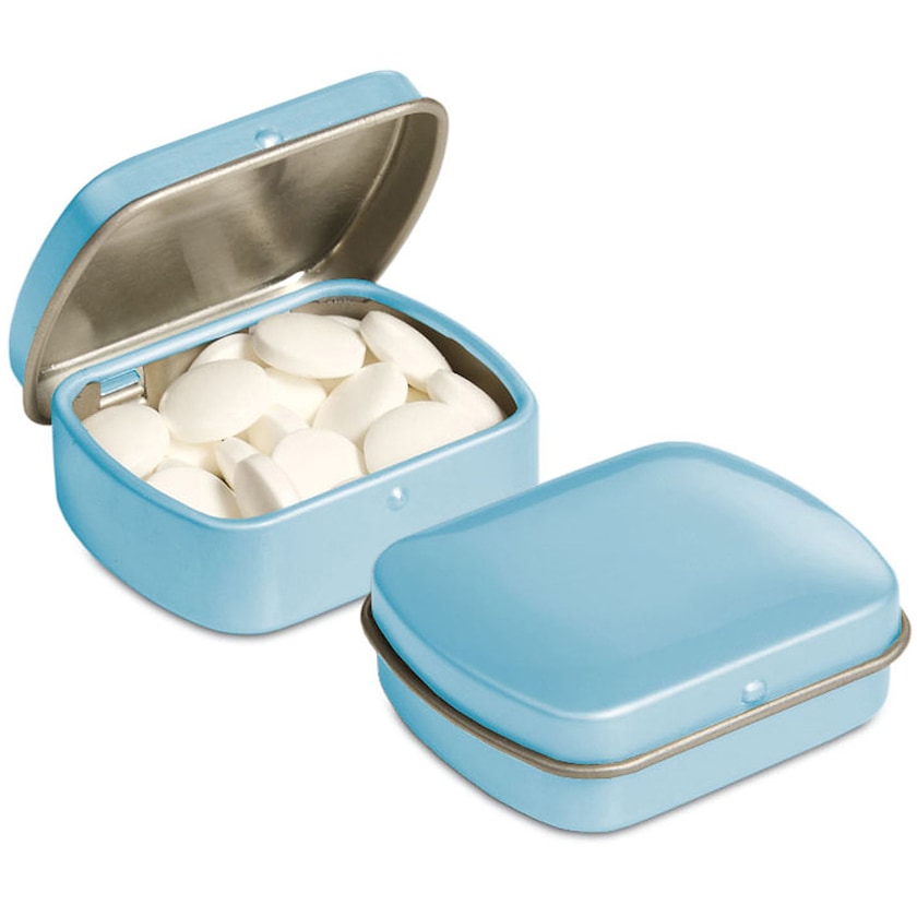 Kleine, elegante Metallbox mit 9 Gramm Mintpastillen.