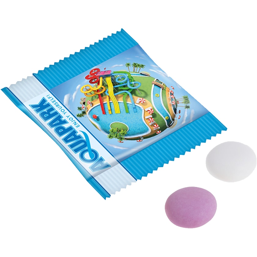 Zwei Mentos im Flowpack mit Ihrem Aufdruck. Wählen Sie zwischen Mentos in den Geschmacksrichtungen Minze und Fruchtmix. Das gesamte Flowpack wird nach Ihren Wünschen bedruckt.