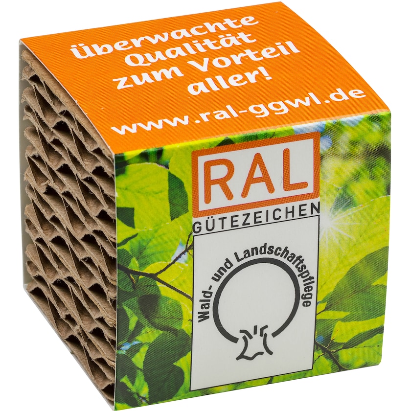 Der Topf ist aus Wellpappe und wird mit Torf und Samen geliefert. Eine umweltfreundliche Wahl! Der Druck erfolgt auf einer Banderolle um den ganzen Topf.