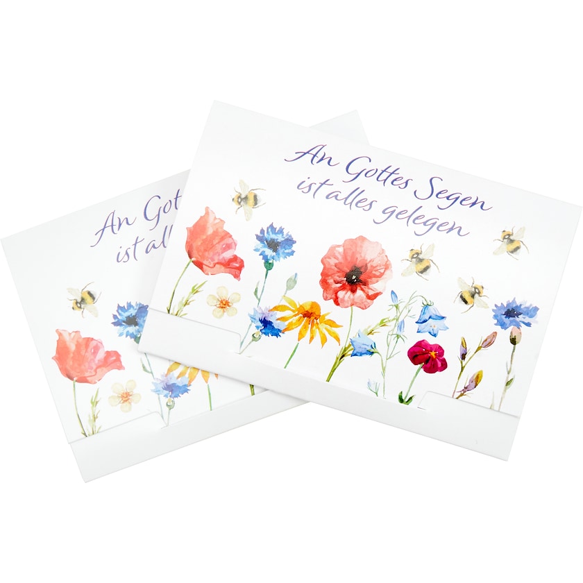 Hübsches Samentütchen das ab 500 Stück bestellt werden kann. Ist mit Samen für Sonnenblumen, Sommerblumen, Ringelblumen, Margerite, Basilikum oder Kresse erhältlich.