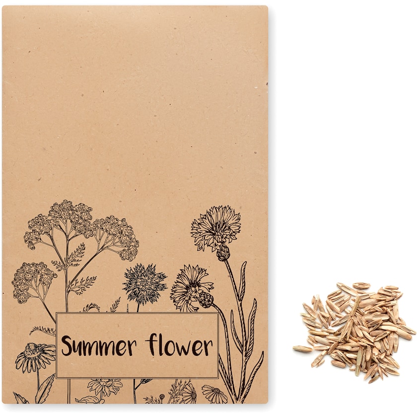 Samenbeutel mit Sommerblumensamen. Den Saatbeutel gibt es schon ab 50 Stk. zu kaufen. Enthält Samen von gemischten Sommerblumen. Das Produkt wird innerhalb der EU hergestellt. Der Druck auf dem unteren Bereich der Vorderseite und der auf der Rückseite ist vorgedruckt und kann nicht verändert oder entfernt werden.