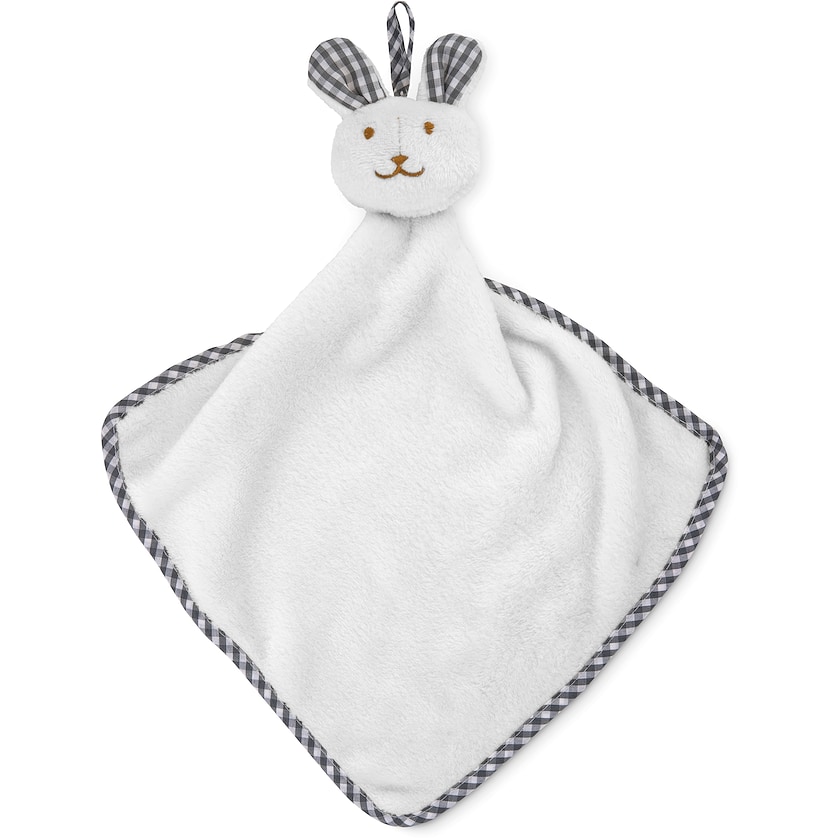 Kuschelige Babydecke in Form eines Kaninchens. Die Decke besteht aus weichem Plüsch.